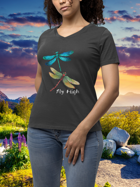 Fly High - Womens Jersey Short Sleeve V-Neck Tee